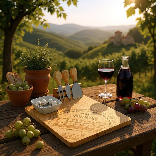 Acacia Wood & Marble Decorative Cheese Serving and Cutting Board