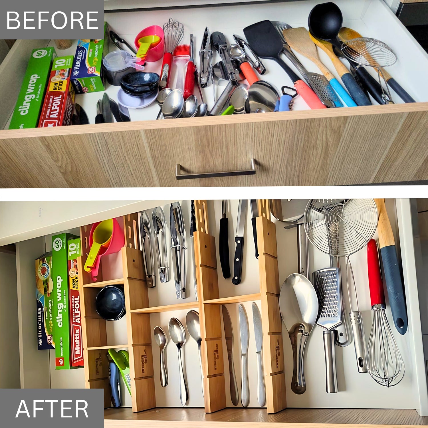 Keep your drawers neat and tidy and find what you need easily. Ideal for organising kitchen cutlery, silverware, & utensils.