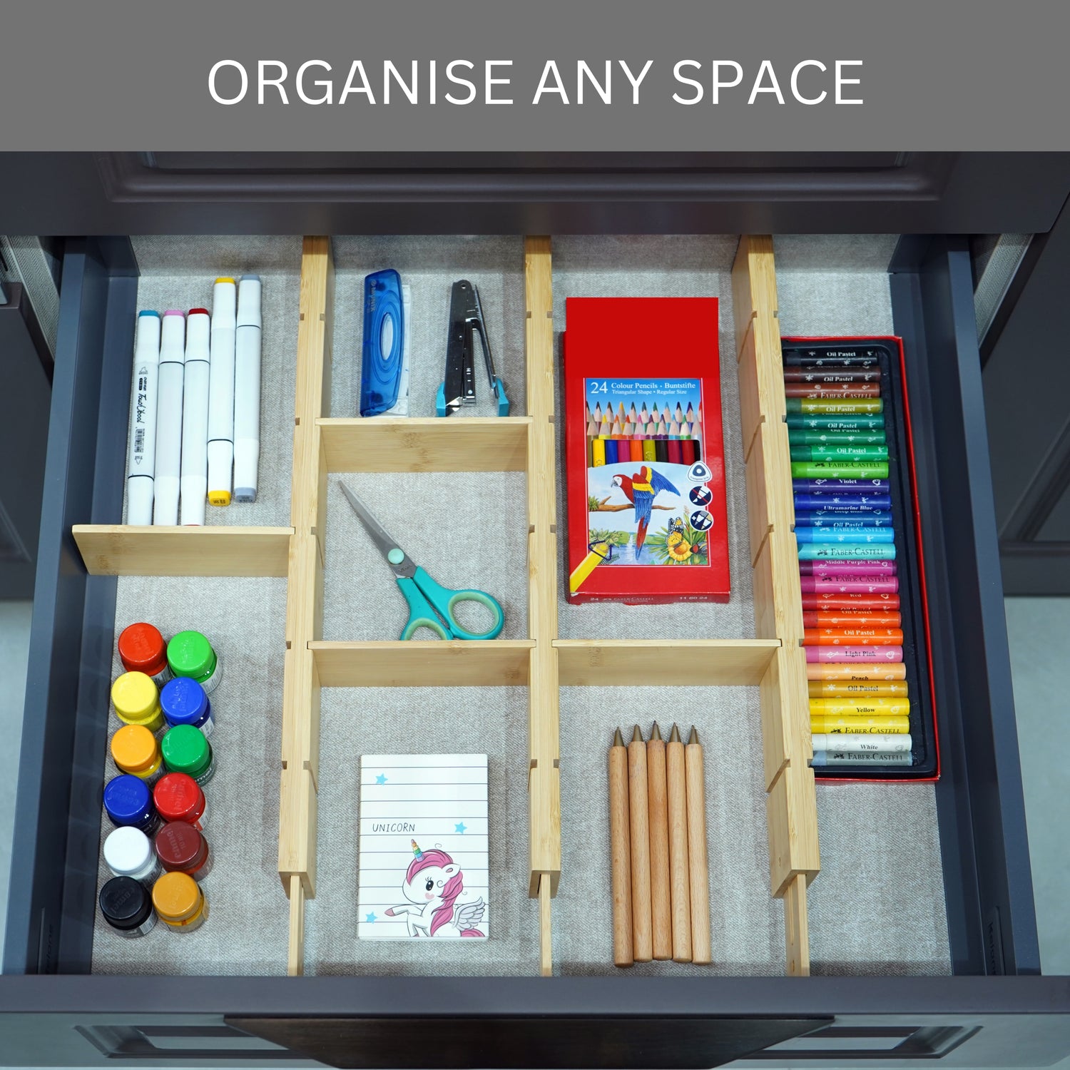 Revolutionise various drawer spaces with these drawer organisers - Drawer storage dividers for kitchen, bathroom, wardrobes, office desk and more.