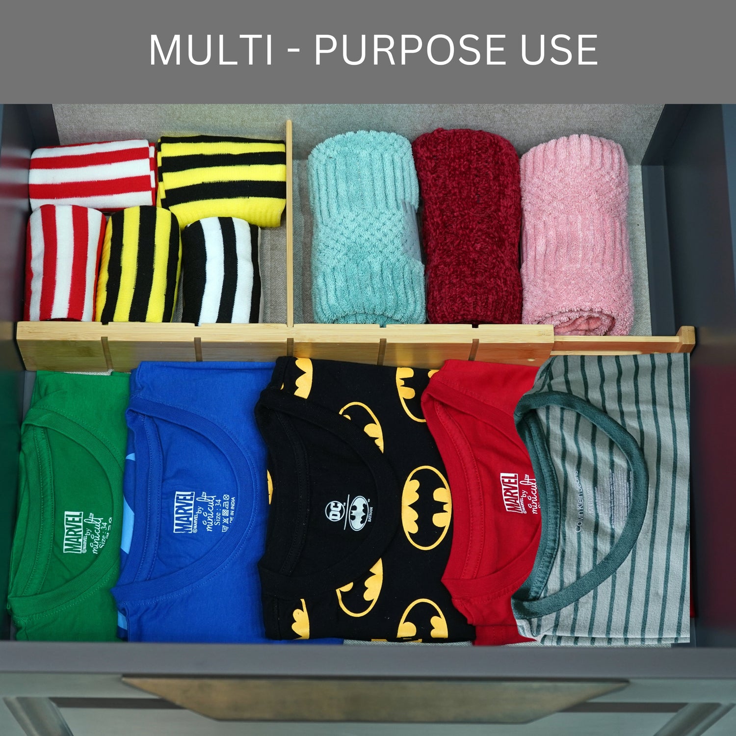 This divider is adjustable to accommodate various drawer sizes, ensuring versatility and practicality for all your organisational needs. You can always rearrange the stuff with changing needs and as you like!