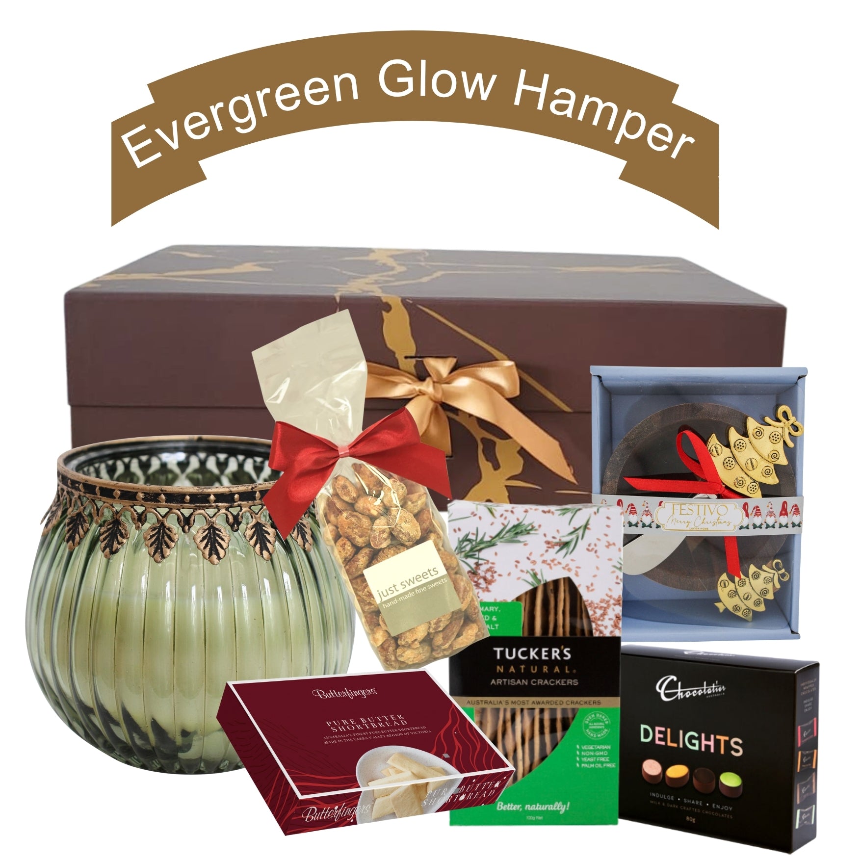 Bring the warmth of the holidays to life with the Evergreen Glow Hamper - a delightful blend of festive charm, glowing ambience, and gourmet indulgence.