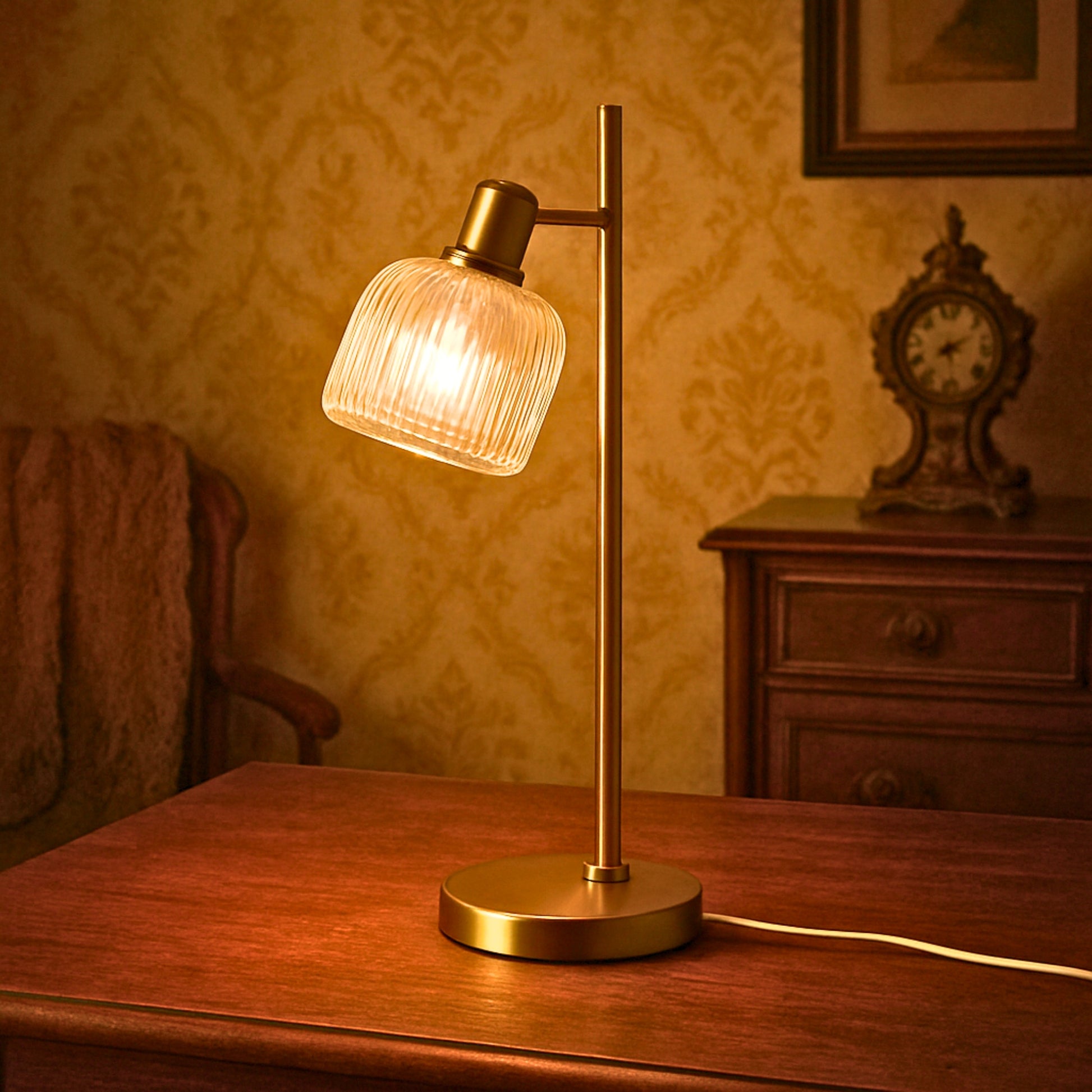 - Warm Ambient Glow – The fluted glass shade diffuses light softly, creating a cozy, inviting atmosphere for desks, bedside tables, or living spaces.