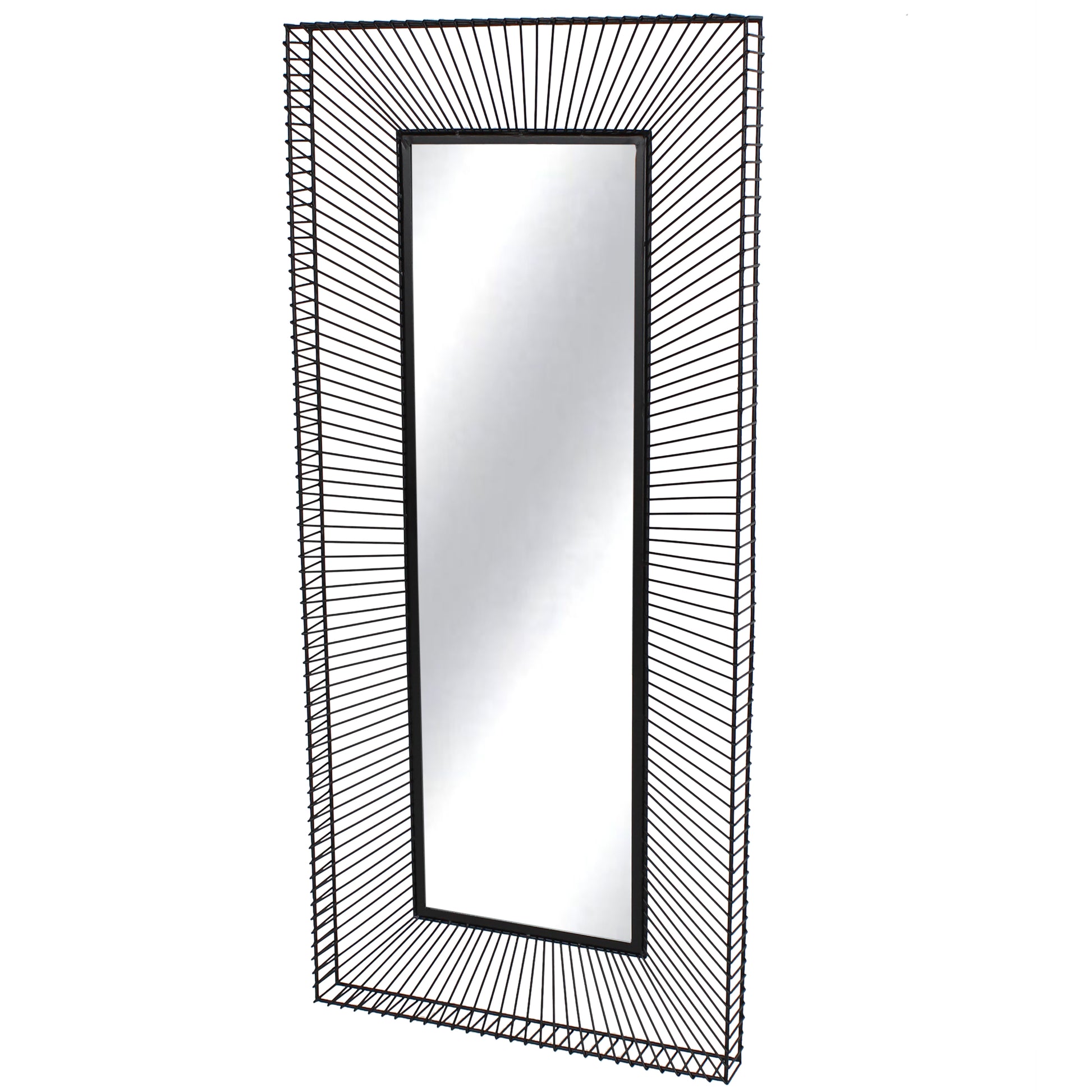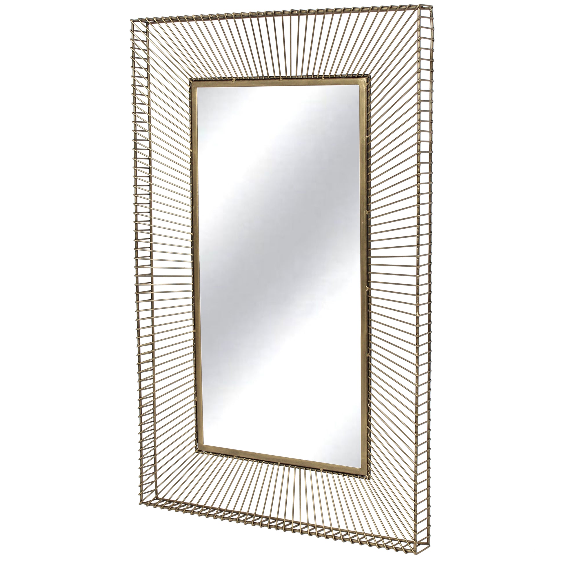 - Radiant Wire-Frame Design – Make a bold statement with this elegant rectangular mirror, featuring fine metal spokes that fan outward to create a dramatic halo effect around the central mirror.