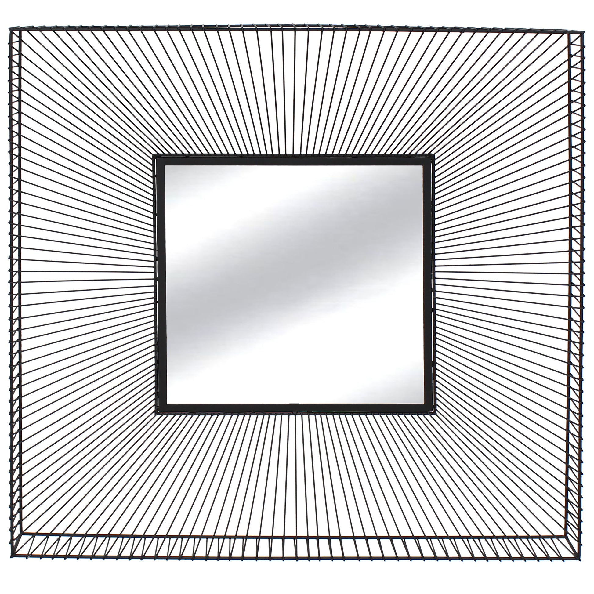 - Striking Wire-Frame Design – Elevate your wall décor with a bold square mirror featuring radiant wire-frame spokes that draw the eye inward and create dramatic visual movement.