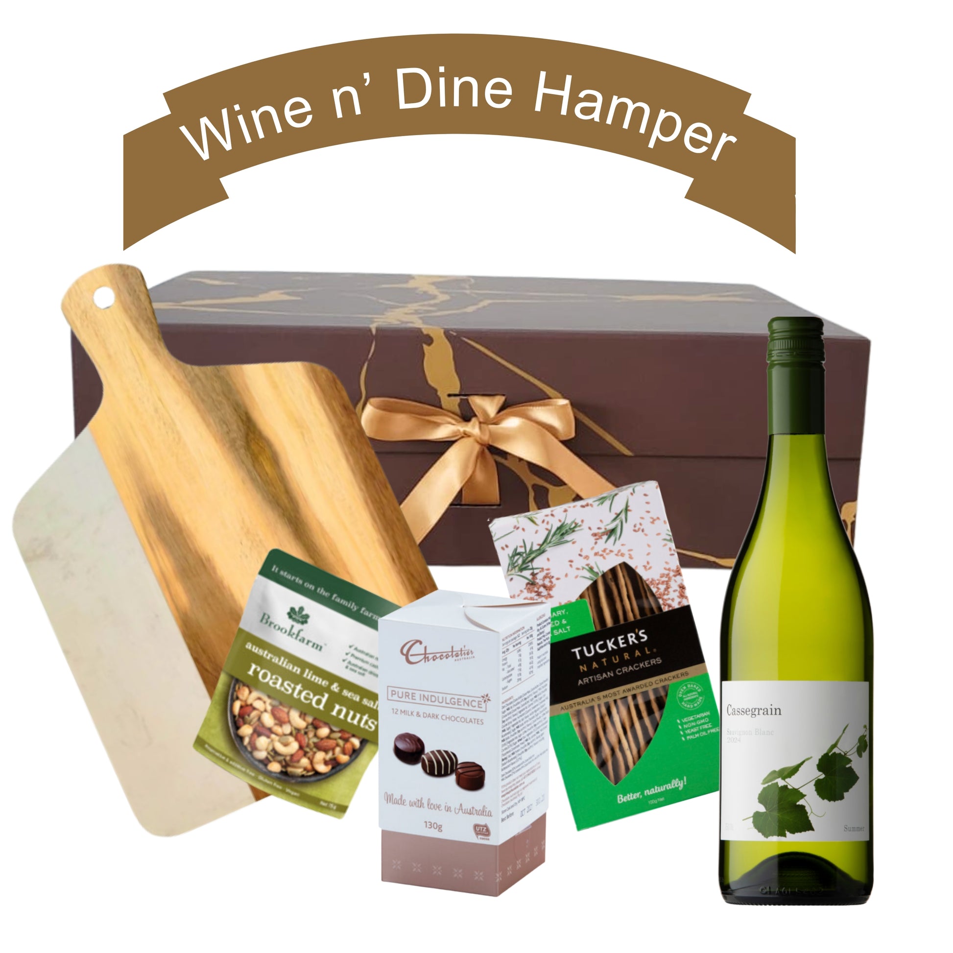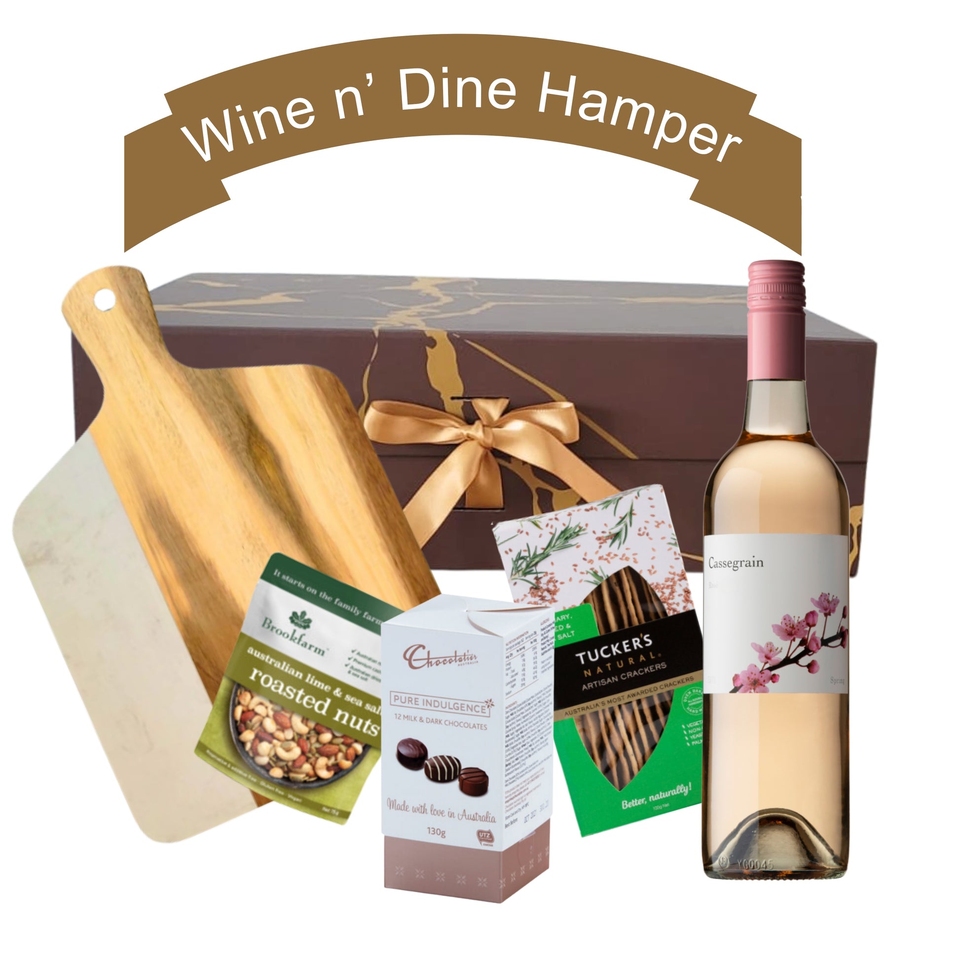 Raise a toast with the Wine n' Dine Hamper, a luxurious gift crafted to celebrate life’s special moments. A perfect balance of indulgence and elegance, this hamper brings together rich wine from Cassegrain Wines, gourmet savouries, and a touch of sweetness — all beautifully presented on a timeless charcuterie board. From relaxing nights to celebratory moments, it’s designed to elevate any occasion. Thoughtfully packed in a premium eco-conscious gift box that’s made to reduce, recycle, and reuse — because every detail should feel good.